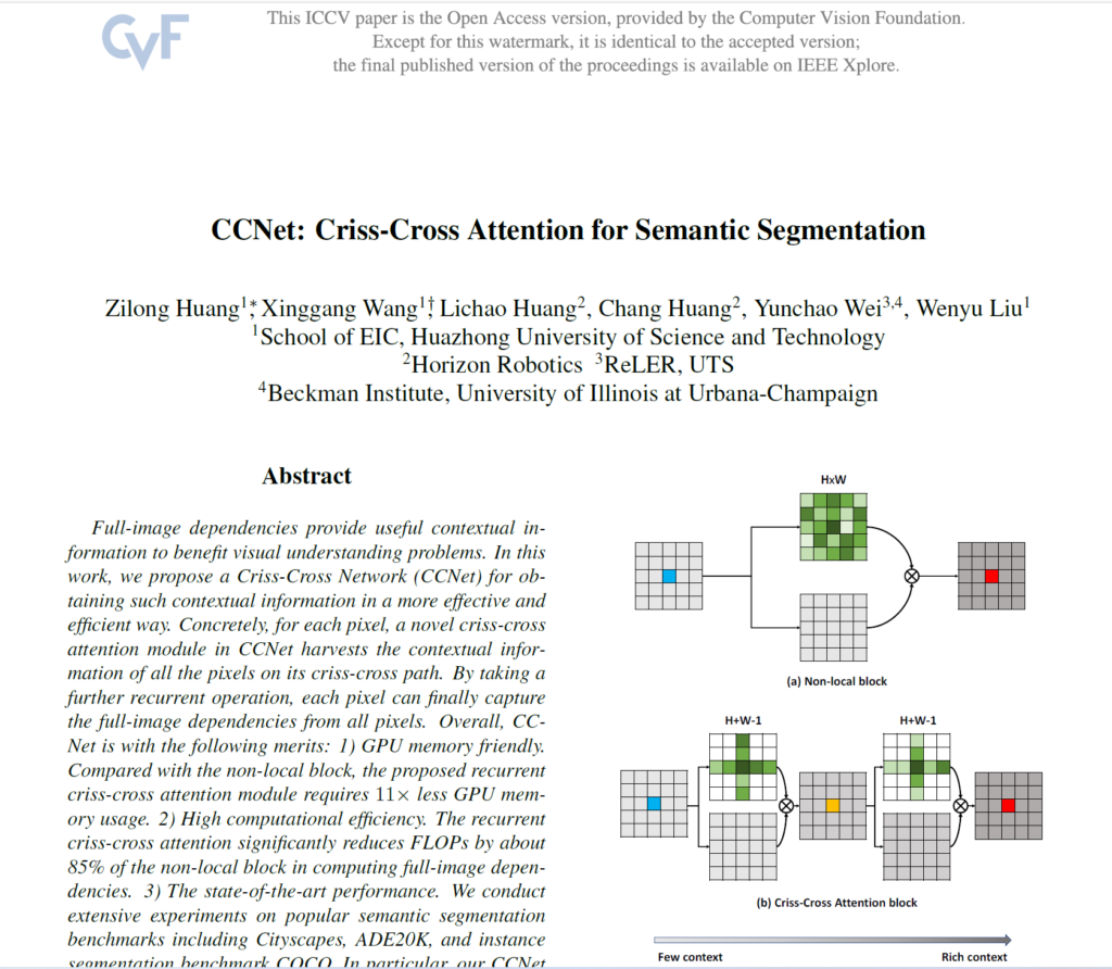 본 논문에서는 criss-cross attention이라는 기법을 통해 criss-cross path의 contextual 정보를 반영하고자 하였고,