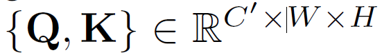 그리고 1×1 Conv를 통해 아래 shape을 만족하는 Q와 K를 생성하게 됩니다.
