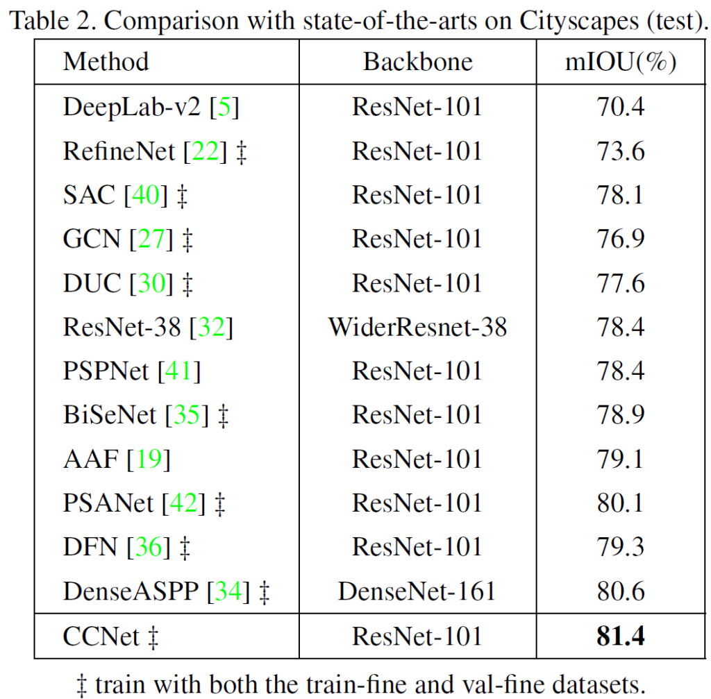 CityScapes test dataset에 대한 평가 결과입니다.