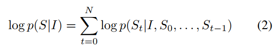 위에서 언급했던 것처럼 input으로 Image가 주어졌을 때 output인 Sequence의 확률이 maximizing하도록 학습됩니다.