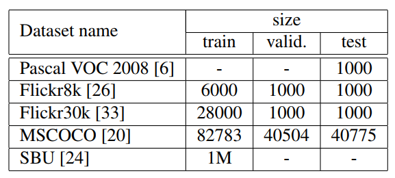 Show and Tell 논문에서는 위와 같은 데이터셋을 사용하였습니다.