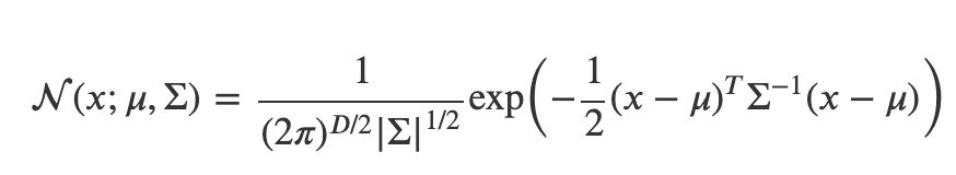 데이터를 가지고 가우시안 분포를 결정할 때는 보통 최대우도법(MLE)을 사용하지만 여기서는 신경망을 이용하여 평균 벡터와 공분산 행렬을 구할 수 있는 함수를 모델링하였습니다.