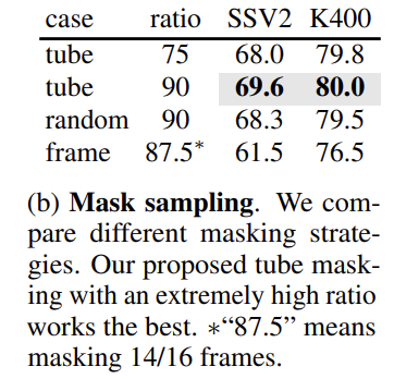 1. 1. frame 자체를 지우는 방법을 의미하는거 맞습니다. Proposed Method 바로 아래에 있는 그림을 자세히 보시면 frame masking에 대한 그림도 나와있습니다. 결과적으로는 tube masking 보다 떨어지는 성능을 보여줍니다.