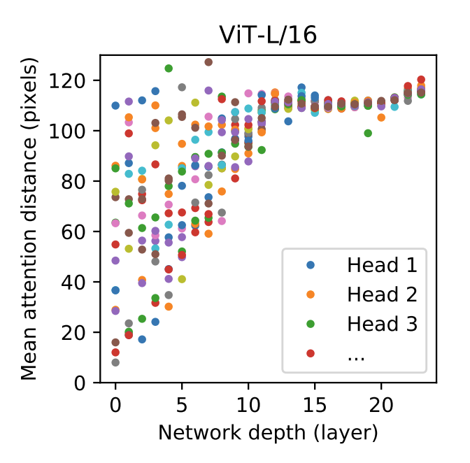 이러한 성질은 CNN의 Receptive Field와 비슷합니다. Vision Transformer 또한 그러한 성질을 가지는 것을 확인할 수 있었네요.