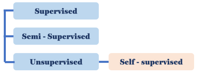 그리고 이 중에서도 스스로(self) supervision을 만들어서 모델을 학습하는 방식을 Self-Supervised 라고 합니다.