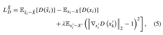 리뷰 논문에서는 총 4개의 generators로써의 decoder를 사용합니다. 저자는 generators의 안정적인 학습을 위해 WGAN-GP에서 제안한 아래와 같은 loss를 이용합니다.
