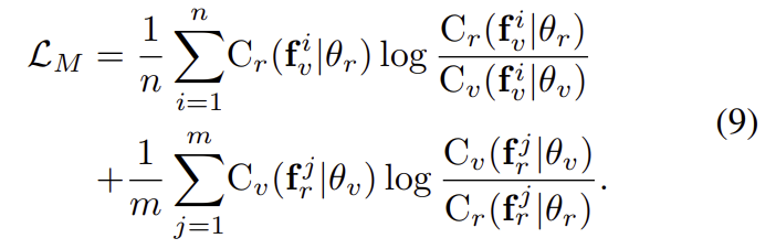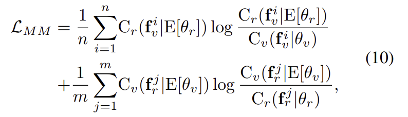 그러나 식9를 그대로 사용할 경우, 분류기가 서로 다른 모달리티로부터 정보를 얻으므로 모달리티와 무관한 feature를 학습하고자 하는 목표에서 벗어나게 된다는 문제가 있어 두 분류기의 평균을 이용하는 방식으로 loss를 구한다고 합니다.