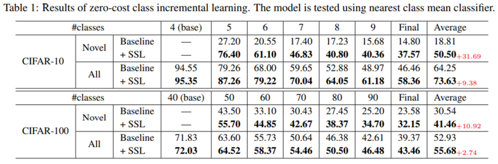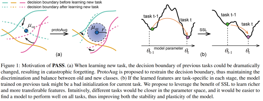 제안하는 방법론은 크게 argumentation된 prototype을 이용하는것과 ssl method를 이용했다는 점이 새로운데요, 이전 데이터에 대한 prototype을 이용해 sample을 그대로 사용할때 발생하는 메모리 낭비를 최소화하면서도 기존 버전의 모델이 갖는 정보의 변화를 최소화 하여 forgetting 문제(문단 주석 참고)를 해결합니다. 또한 SSL 방법론을 적용해 모델이 학습시 data에 fitting 된 정보가 아닌 일반화된 정보를 학습하게 하여 task 이동시 발생할 수 있는 어려움을 최소화하였습니다.