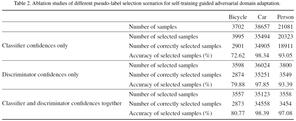 해당 table에 대한 참신한 분석은 없고, 그냥 Classifier와 Discriminator를 모두 사용 시 성능 향상이 일어났다… 뭐 이렇게만 리포팅 하고 있습니다.