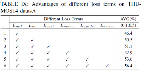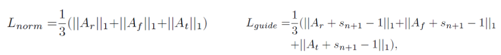 마지막으로 L_{norm}, L_{guide}인데 L_{norm}은 attention 값들을 sparse하게 만들어주고 L_{guide}는 action score와 background score가 동시에 커지는 현상을 방지해주는 역할을 수행합니다.