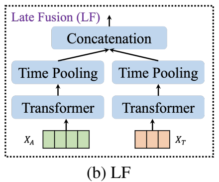 EF는 오디오, 텍스트 featre extractor에서 termoral pooled feature를 단순히 concat 하였습니다.