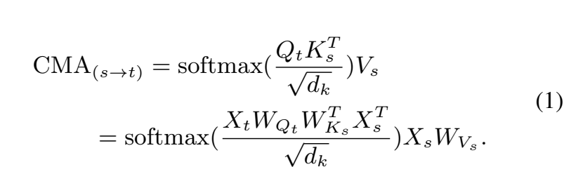 • W_{Q_t}\in{\mathbb{R}^{d_t\times{d_k}}}, W_{K_s}\in{\mathbb{R}^{d_s\times{d_k}}}, W_{V_s}\in{\mathbb{R}^{d_s\times{d_v}}}