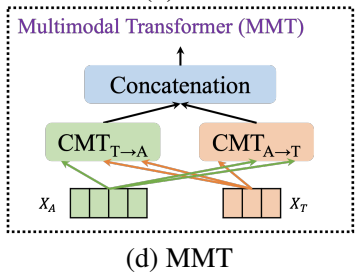 그런 다음에 feature를 통합하기 위해 새로운 Multimodal Transformer (MMT) fusion module을 제안하였다. MMT의 핵심 구성 요소는  directional pairwise cross-modal attention 기반 Transformer (CMT)로, 모달리티 간의 상호 작용을 하도록 한다. MMT를 거친 후에 출력은 classifier에 들어가 최종적으로 감정을 예측한다.