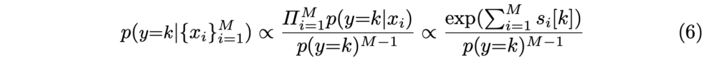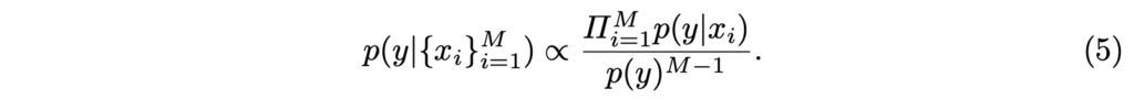 최종 정리된 수식 4와 같이 각 모달리티 별로 예측된 확률을 모두 곱하고, 이들에 대한 모든 확률으로 나눠주면 각 모달리티를 고려한 확률이라고 볼 수 있는거죠.