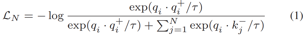 학습 자체는 모르시는 분들이 없겠지만… [수식 1]과 같이 수행이 됩니다. 비디오 V에서 클립 v_i가 샘플링되고 이 클립들 끼리 학습을 수행하는데요. 당연히 ‘+’가 붙을 경우 positive clip이고 ‘-’가 붙을 경우 negative sample 입니다. 이때 negative sample들은 query와 동일한 비디오가 아닌 클립셋으로 구성이 되고요.