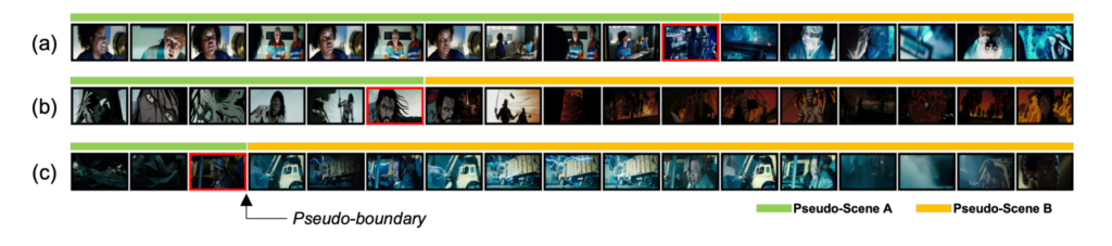 그런데 사실 pseudo boundary를 잘 찾는 것 부터가 어렵습니다. Scene Segmentation은 학습을 통해서 boundary를 찾는 과정인데 pseudo boundary는 학습을 하지도 않고 일단 학습에 사용할 boundary를 찾아야하는 것이니 많은 제약조건이 있겠죠.