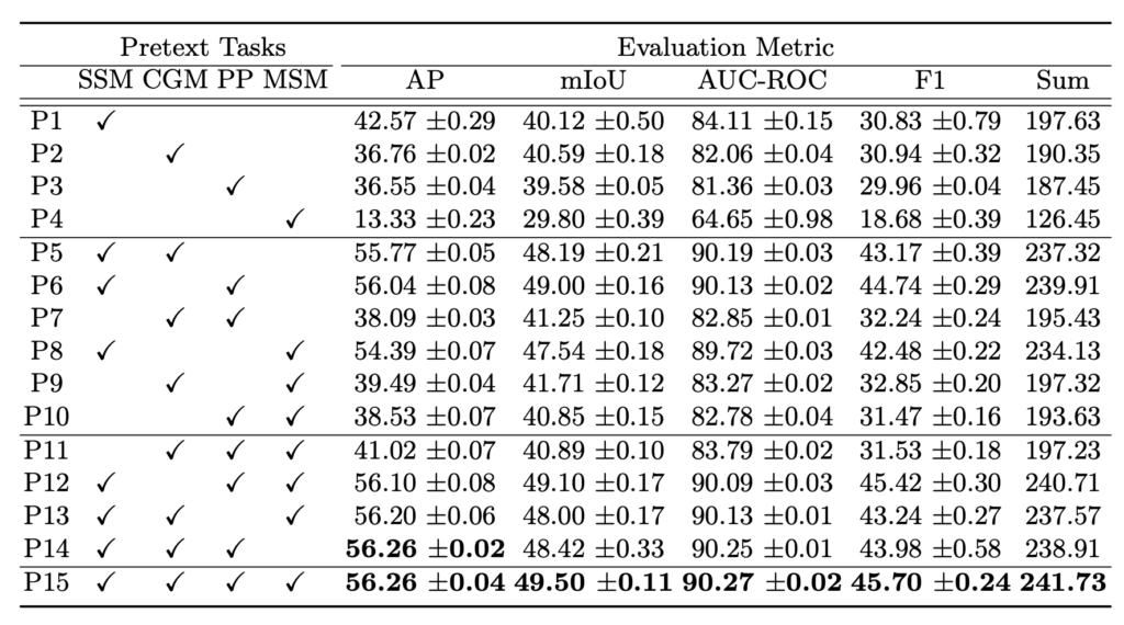 Ablation study 입니다. 4가지 Loss를 토대로 만들어지는 모든 case를 다 진행했네요. 모든 case의 경향성을 보진 않았지만 대충 SSM과 CGM만 사용해도 굉장히 높은 성능을 보여주고 있습니다.