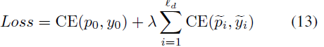 단순히 FC layer를 태워 분류하고 있습니다. i번째 예측에 대한 실제 라벨은 \tilde{y_{i}}라고 할 때, 최종 loss는 아래와 같습니다.