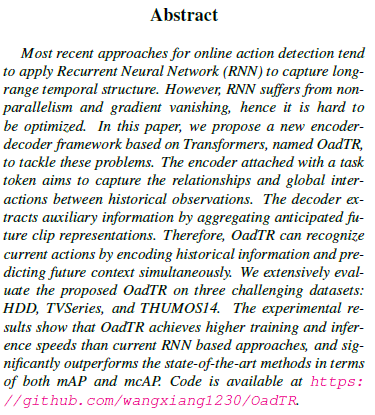 - Online Action Detection (OAD) – [ICCV 2021] OadTR: Online Action Detection with Transformers