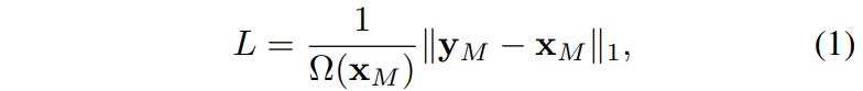 x와 y는 각각 input image, predicted value를 의미하며,M은 masked pixel을, 옴은 요소들의 숫자를 의미합니다. 본 논문에서는 단순히 L1 loss 뿐만 아니라 L2, Smooth L1 loss 등에 대해서도 실험을 진행하였다고 합니다.