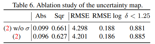 그리고 위 실험결과는 uncertainty map의 적용 유무에 따른 성능 차이를 보여줍니다.