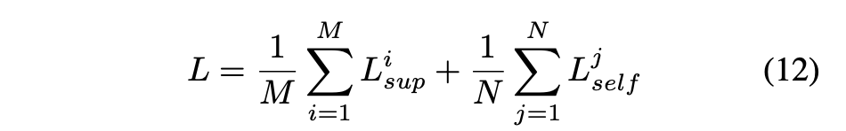 저자는 사전 학습 후에 실제 데이터 셋을 자기 지도 학습 방식으로 모델을 훈련할 경우, 이전 데이터 셋에서 학습한 지식을 점차 잊어다는 문제를 제기합니다. 그렇기에 합성 데이터 셋에서 학습한 사전 정보가 실제 장면을 학습하는 데 매우 중요하다는 점을 고려하여 이전 지식을 기억할 수 있도록 간단한 joint learning을 제안합니다. 각 배치에 대해 라벨이 지정된 합성 샘플과 라벨이 지정되지 않은 실제 샘플을 동시에 네트워크에 공급하고, 합성 데이터에 대한 fully supervised loss L_{sup} 과 실제 데이터에 대한 self-supervised loss L_{self} 의 조합으로 손실 함수를 계산합니다.