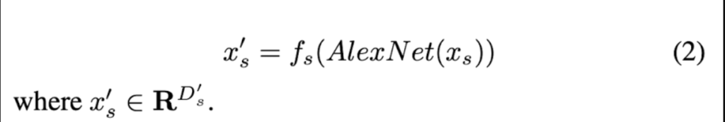 다음은 spectrogram입니다. 먼저 사전 학습된 AlexNet으로 reshape을 진행해준뒤 MFCC와 동일한 연산작업에 따라 feature를 얻습니다. 수식으로 표현하면 [식 (2)]와 같습니다.