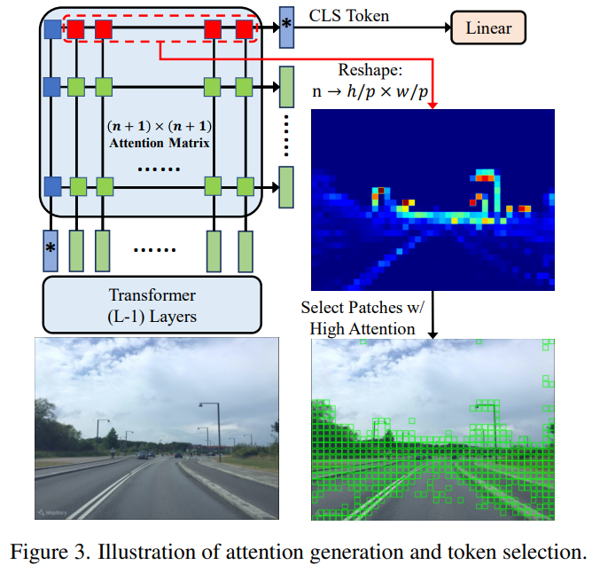 따라서, token selection은 n차원의 백터를 h/p ⨉ w/p 의 attention map으로 재구성하여 모든 토큰을 정렬하고, 그 중 정보량이 높을 것으로 판단되는 상위 500개의 토큰을 선택합니다. 이렇게 하여, 500개의 토큰에 대해, 131차원(local feature(128) + attention 값과 x,y 좌표(3) = 131)의 feature를 얻게 됩니다.