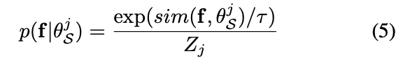 f와 θ^j_S는 모두 피처 공간에 놓여 있으므로, 각 구성 요소는 다음 [수식 5]와 같이 유사성에 따라 정의할 수 있습니다.