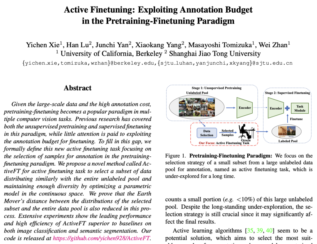 4 thoughts on “[CVPR 2023] Active Finetuning: Exploiting Annotation Budget in the Pretraining-Finetuning Paradigm