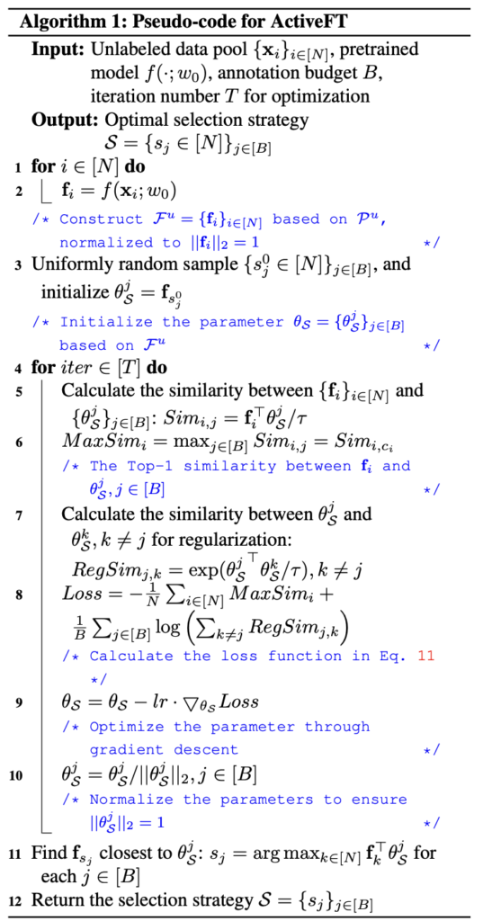 결론적으로 저자가 제안하는 ActiveFT를 요약한 수도코드는 다음과 같이 정리할 수 있습니다.