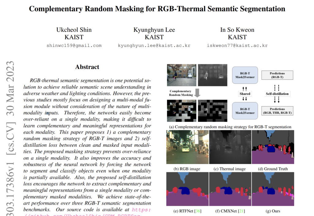URP 이후 오랜만에 RGB-Thermal Multispectral을 이용하는 논문이 눈에 띄어 재밌게 리뷰를 읽을 수 있었습니다.