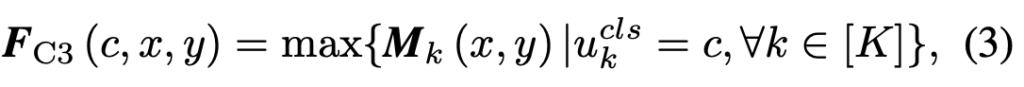 바로 직전 (2)의 부분을 통해 (3)의 F_{C3} 를 얻습니다. 저자는 해당 작업을 Correlation 이후 하나의의 F_{C3}로 Collate하는 순서를 따라 Class-wise Collated Correlation Module, C3로 명합니다 물론, 해당 순서의 반대인 Collated-and-Correlation에 대해서도 확인해봤으며, 이는 User input에 강인한 측면이 있으나 각 object들이 연관되지 않은 single feature representation을 갖는다고 합니다. 그쵸. 아마 생각해보면, Correlation 연산이 Collate 이전에 있는지, 이후에 있는지에 따라 object의 feature representation 방향이 바뀌는 것으로 이해할 수 있습니다.