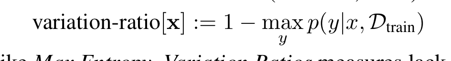 3. Variation Ratios를 최대화하는 기법입니다. 1번인 맥스 엔트로피와 마찬가지로 이 기법은 불확실성을 나타냅니다.
