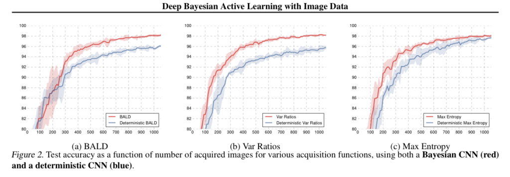 따라서 이런 BCNN을 활용하면 불확실성 정보가 표현되기 때문에, 기존 연구되고 제안된 acquisition function을 함께 사용할 수 있습니다.