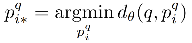 이 potential positive image {p_i^q} 중 query image와 지리적으로 가장 가까운 이미지p_{i*}^q의 수식은 다음과 같습니다.