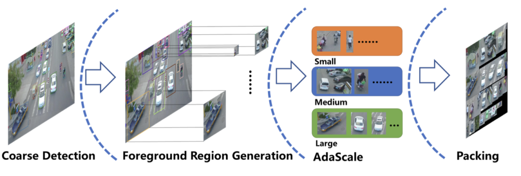 (3) 세 클러스터를 Packing합니다. Packing이라함은 mosaic 방법을 통해 이미지를 새로 만드는 방법으로 생각하면 됩니다. 이제 해당 Packing된 이미지를 fine-detector에 입력으로 통과하면 Small object에 대한 성능을 높일 수 있습니다.