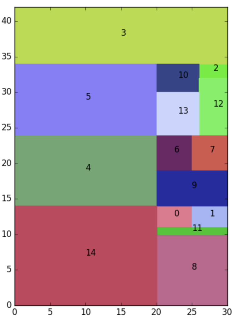 본 Part. 1 리뷰의 마지막 부분입니다. 해당 Packing 과정을 통과하면, UFP 모듈을 이해했다고 생각할 수 있습니다. Packing은 저자가 언급한 Drone 이미지에 대해 통용되던 coarse-to-fine pipeline에서 fine-detector가 해당 cluster 등에 대해 따로 적용되는 효율성 및 computation cost를 문제로 삼아 극복하고자 함으로, Mosaic 방법으로 검정색 이미지 내 사전에 구성한 Small-Medium-Large Cluster를 재배치하는 과정을 거칩니다. 본 논문에서는 다섯 줄에 걸쳐 소개하고 끝나지만, 우리는 조금 더 살펴볼 필요가 있습니다. 저자는 위에서 언급한 문제를 피하고자 PHSPPOG 방법을 통한 Mosaic 방식으로 이은 통합된 Region에 대해 fine-detection을 수행하는 방법에 대해 언급합니다. PHSPPOG 방법이란 “A priority heuristic for the guillotine rectangular packing problem, 2016″에 언급된 방법으로,쉽게 생각하면 고정 크기 사각형 내 일정 박스들을 배치(포장)하는 최적화 방법입니다. 아래 코드 및 결과를 통해 살펴보겠습니다. 코드를 보면 phspprg내 width와 boxes들을 넣어, 해당 width에 맞게끔 boxs들을 최적으로 배치하는 결과를 뱉습니다. 해당 방법을 통해 이미지 내 Cluster를 빠짐 없이 배치하고자함이 보입니다.