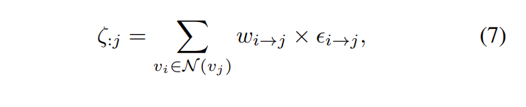 여기서 \mathcal{N}은 v_j에 injected된 set of vertices를 나타냅니다.