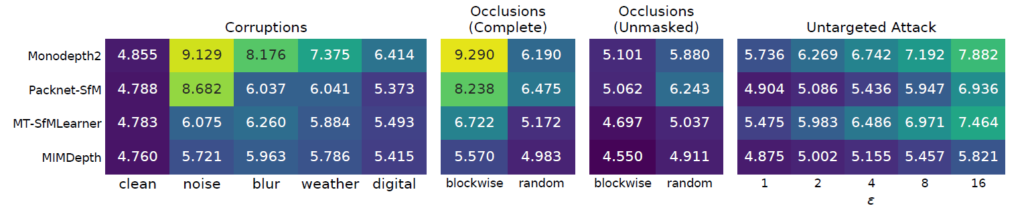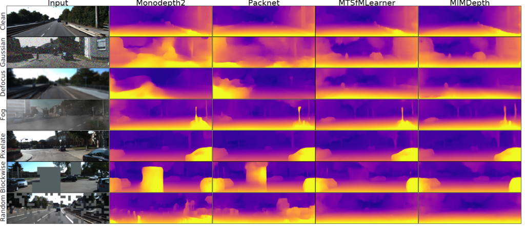 그럼에도 불구하고 해당 논문이 ICRA에 붙을 수 있었던 이유는, MIM 기반 방식을 처음 Self-SUP Depth Estimation에 적용하기도 하였으며, 게다가 이러한 학습 방식이 다양한 robustness 상황에 강건하게 동작할 수 있다라는 가능성을 보여주었기에 그 부분이 리뷰어들에게 매력적으로 다가오지 않았는가 싶습니다.