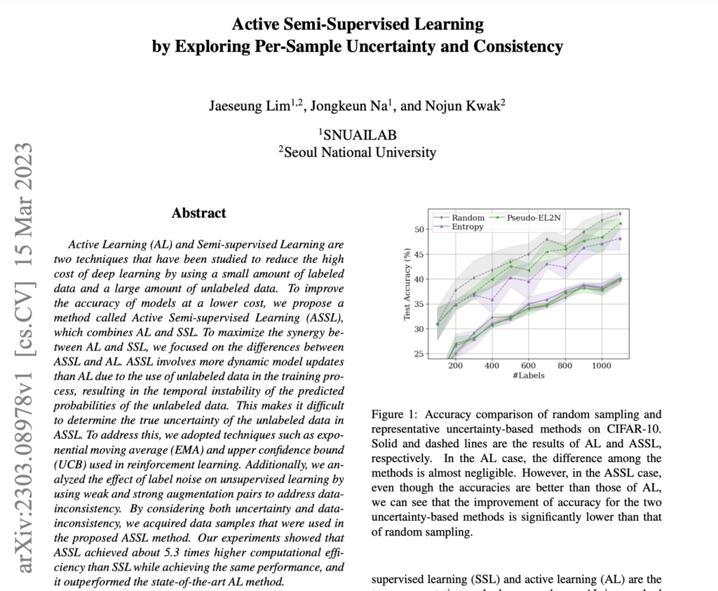 - Paper: [arxiv 2023] Active Semi-Supervised Learning by Exploring Per-Sample Uncertainty and Consistency
