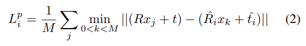 2. GT는 객체 전체에 대한 pose 정보이고, 예측된 pose는 3D point 중 랜덤하게 선택된 포인트로부터 구한 Pose 정보입니다. 따라서, 랜덤하게 선택된 M개의 포인트들이 모두 각각의 pose를 예측하고 이 예측된 pose와 객체에 대한 pose의 오차를 이용하는 loss입니다. (즉, 포인트마다 GT가 달라지지 않습니다.)