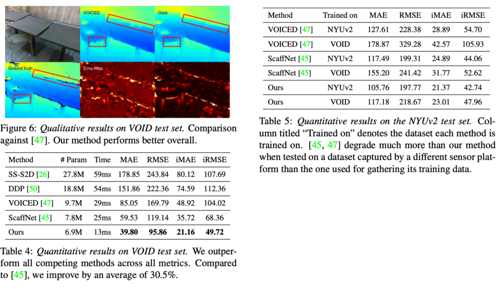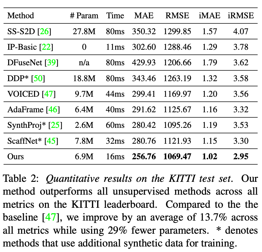 Tab 3에서는 S2D와 유사한 SSP를 비교하기 위한 실험도 진행하였습니다. SSP는 trade-off를 고려하지 않고 설계된 모듈이기에 S2D 대비 저조한 성능을 보여줍니다. 최종적으로 S2D와 KBNet 조합이 가장 좋은 성능을 보여줍니다.