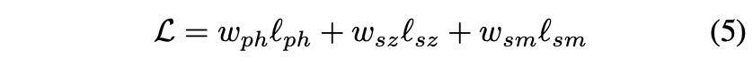 픽셀 단위로 추정되는 L_{perl} 는 다음과 같이 구성됩니다.