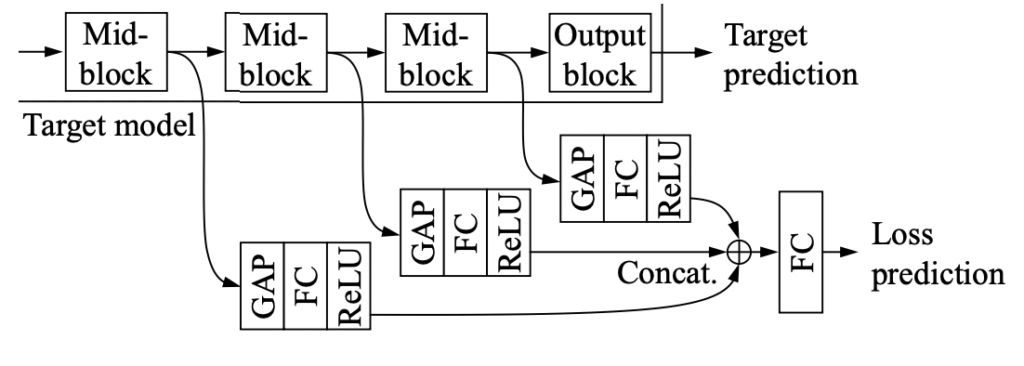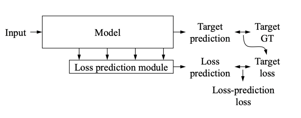 우선 해당 리뷰를 이해하기 위해서는 Learning Loss에 대한 이해가 반드시 선행되어야 합니다. 따라서 본격 리뷰에 들어가기 앞서, 이번 파트에서는 Learning Loss (이하 LLoss) 에 대해 설명드리겠습니다. (*참고로, Learning Loss 에 대한 상세한 리뷰는 일전에 조원 연구원이 다룬 적 있으니 더 자세한 내용이 궁금하신 분을 위해 링크를 옆에 걸어두도록 하겠습니다. – 조원 연구원 LLoss 리뷰)