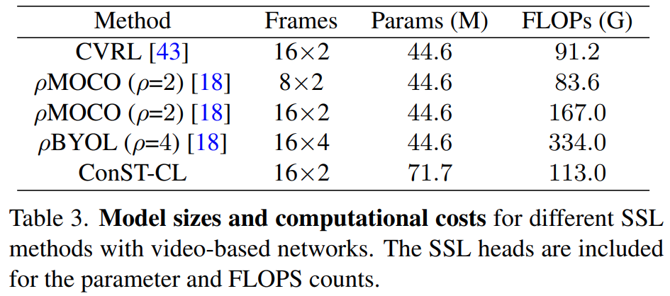 또한, 모델 입력 프레임 갯수와 크기에 대해서도 비교를 하는데요. 모델을 수정했고, 트랜스포머를 쓰기 때문에 파라미터 자체는 클 수 밖에 없지만, 연산량 측면에서는 오히려 더 적다는 점을 강조합니다.