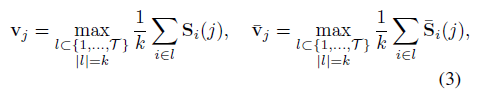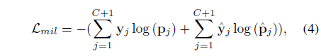 총 N개의 비디오를 받고 각각은 \{\mathcal{V}\}_{j=1}^{N}으로 표현합니다. 각 비디오에 대한 video-level label은 \{y_{j}\}_{j=1}^{N}입니다. y_{j}는 앞서 말씀드린 이진 벡터로 클래스 존재 여부를 나타냅니다.