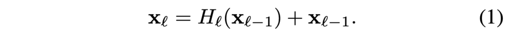 표기상 ℓ번째 layer에서 비선형 변환을 Hℓ(·) (배치 정규화, ReLU, Pooling, Conv같은 연산으로 구성) → ℓ번째 층의 output을 xℓ이라 합니다. 참고하시면 되겠습니다.