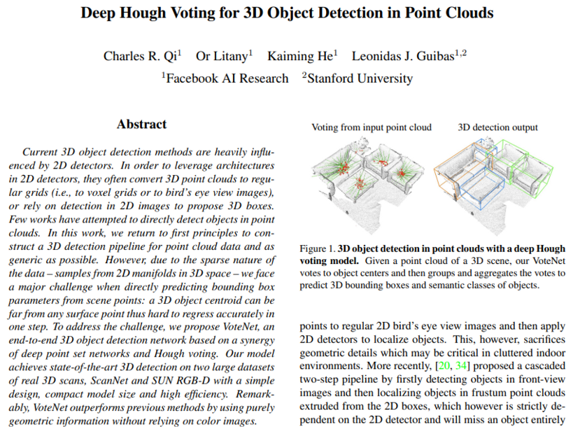related work에서는 hough voting이 2D detection을 비롯한 여러 task에서 여러 기술들과 합쳐서 적용되 있음을 이야기하면서 3D Object Detection에서는 2D pipeline을 따라가는 방법론에 한해서 hough voting을 사용하고 있다고 말하고 있습니다. 2D detector를 적용하지 않으면서 voting 기법을 사용하는 저자의 방법론을 강조하려 했음이 아닐까 싶습니다.