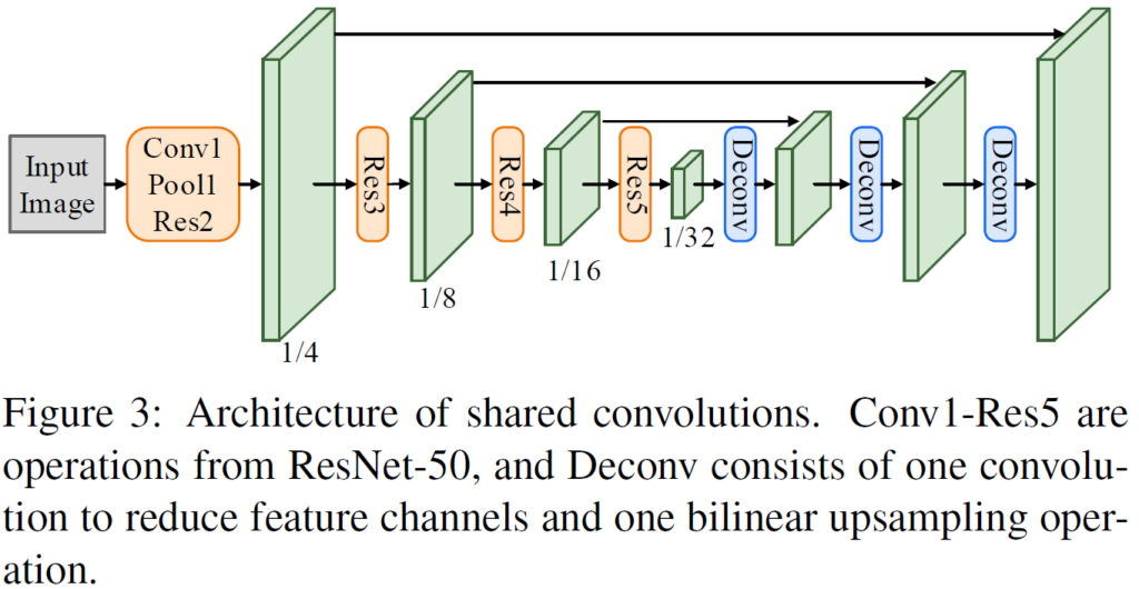 위 그림 2의 모델 전체 구조에서 Shared Convolutions 그림을 보시면 Feature Extraction을 수행하는 Encoder 말고도 뒤쪽에 조금 더 shallow한 decoder가 붙어 있는 것을 보실 수 있습니다.